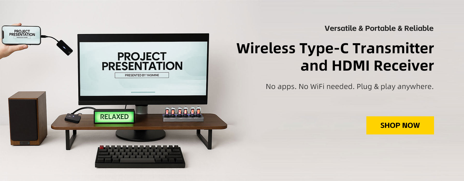 Wireless HDMI & USB-C Transmitter/Receiver - 0.05s Ultra-Low Latency, 328ft Range, No Wi-Fi or App Needed