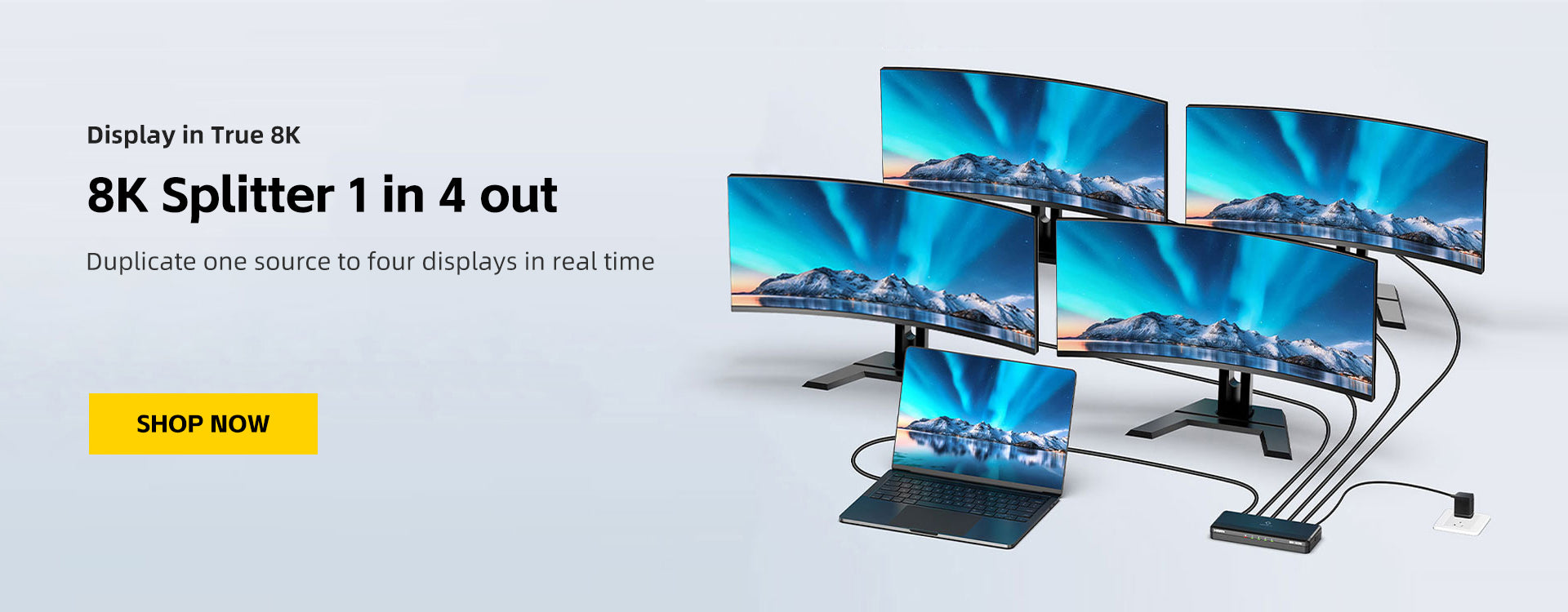 8K HDMI Splitter 1x4, 8K@60Hz, 4K@240Hz(DSC), HDMI 2.1, HDCP 2.3,VRR, For PS5/PC/Monitor