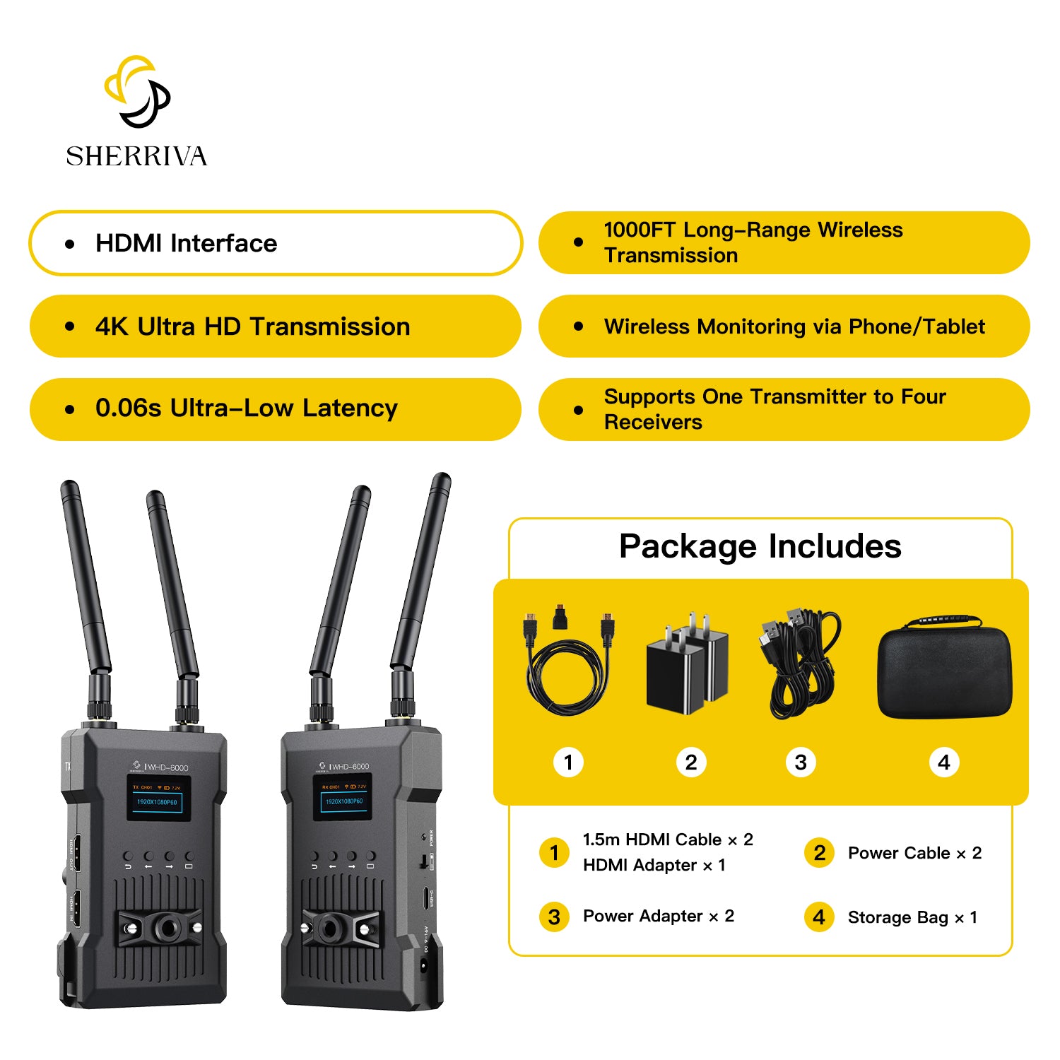 Wireless Video Transmission System for Camera, Real 4K@30Hz, 0.06s Latency, 1000FT